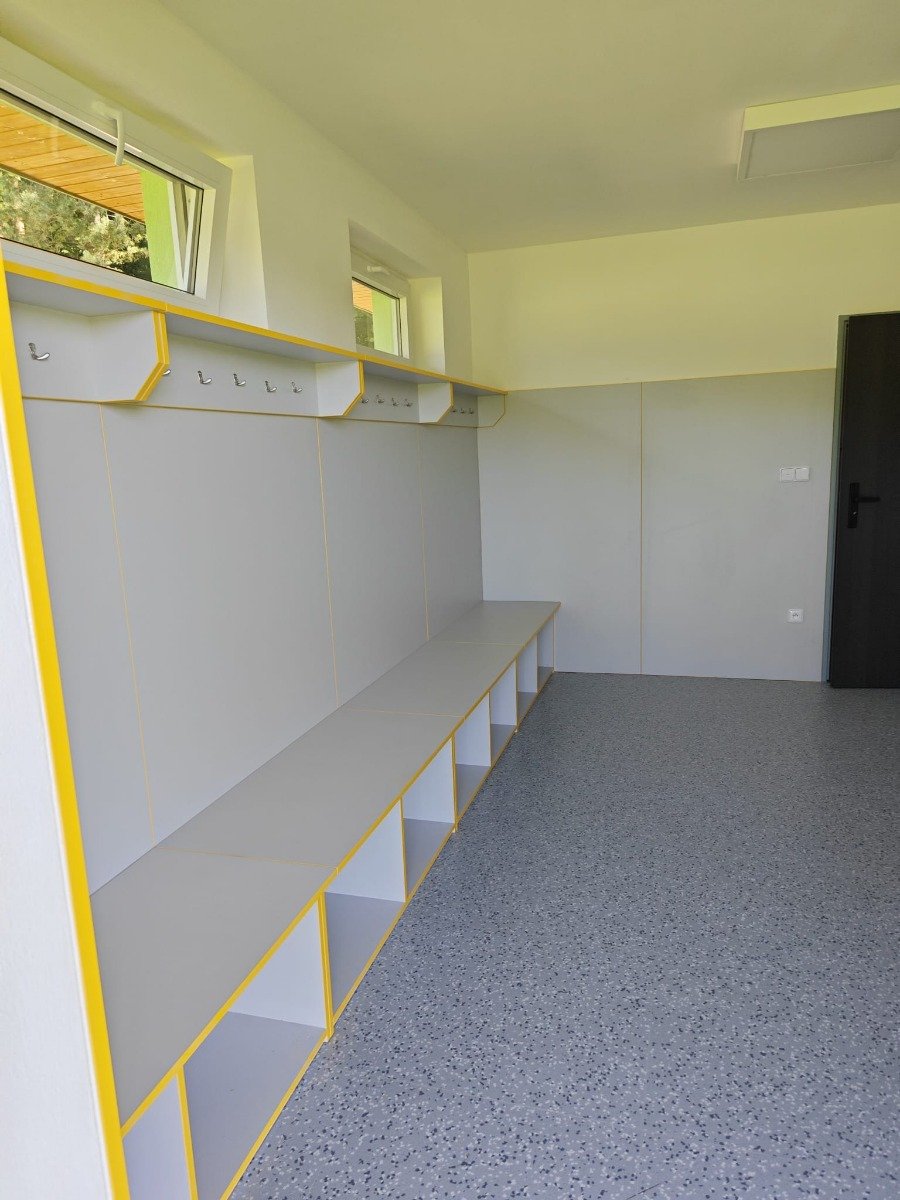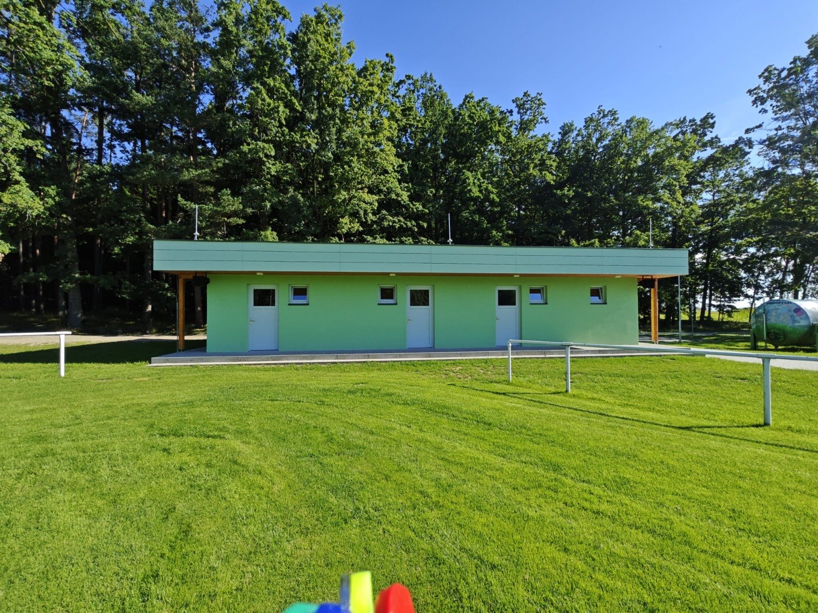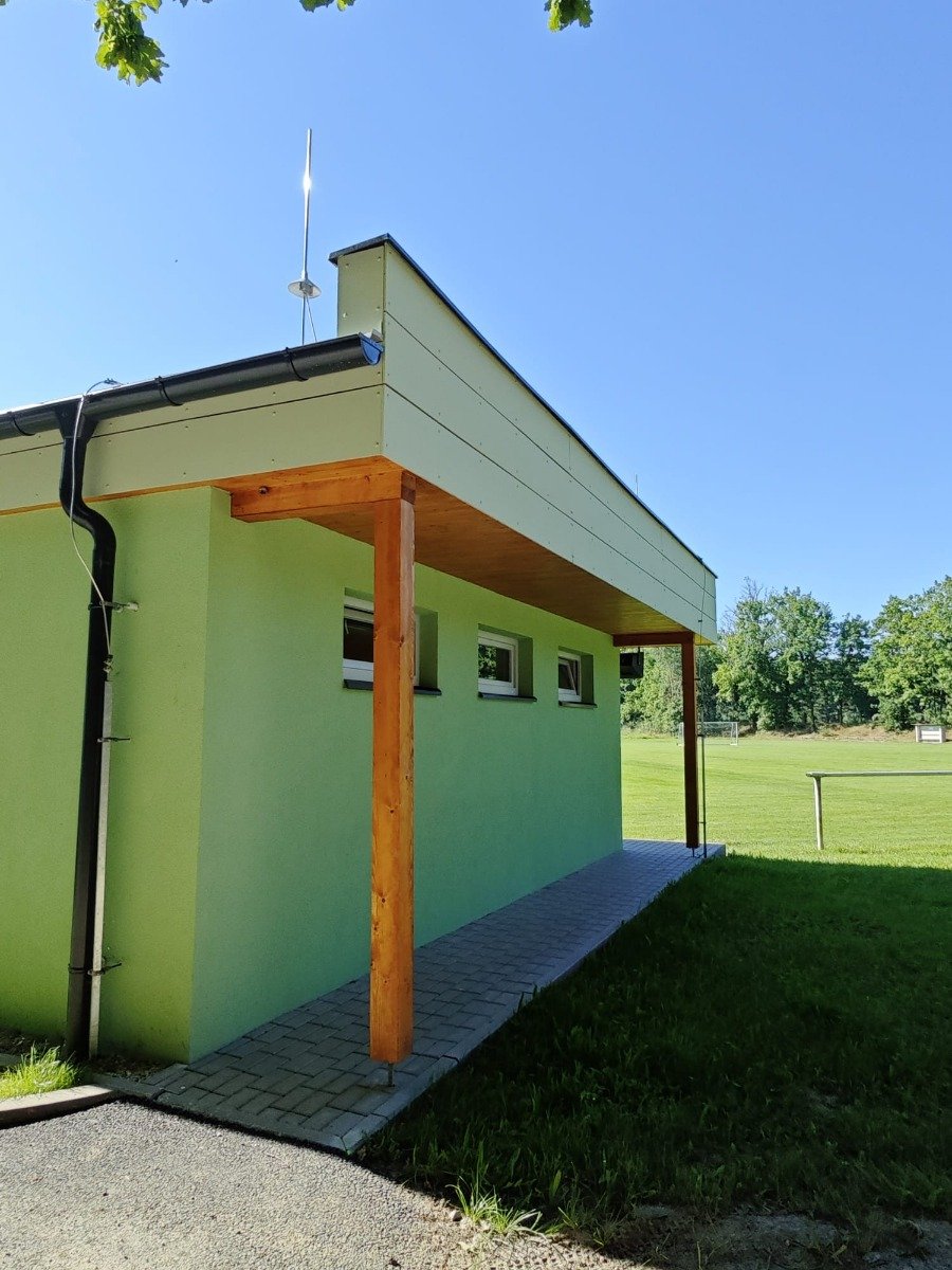 Obec Dubné provedla v roce 2024 - 2025 celkovou opravu fotbalových kabin – technické zázemí v k.ú. Dubné na sportovišti „Hajský“